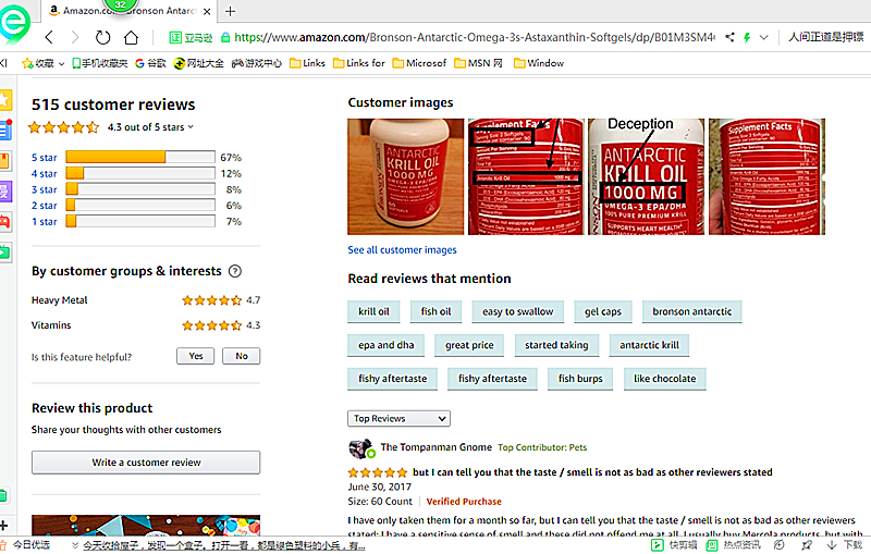 515条评论,好评度98%,详见网站搜索,以下是美国亚马逊顾客的英文评论的原文。