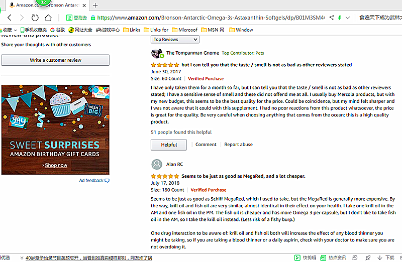 美国BRONSON南极洲磷虾油/虾青素胶囊