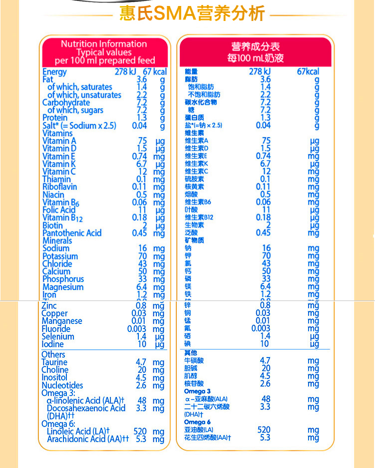 SMA PRO母乳配方奶粉1段 800g(0-6个月)