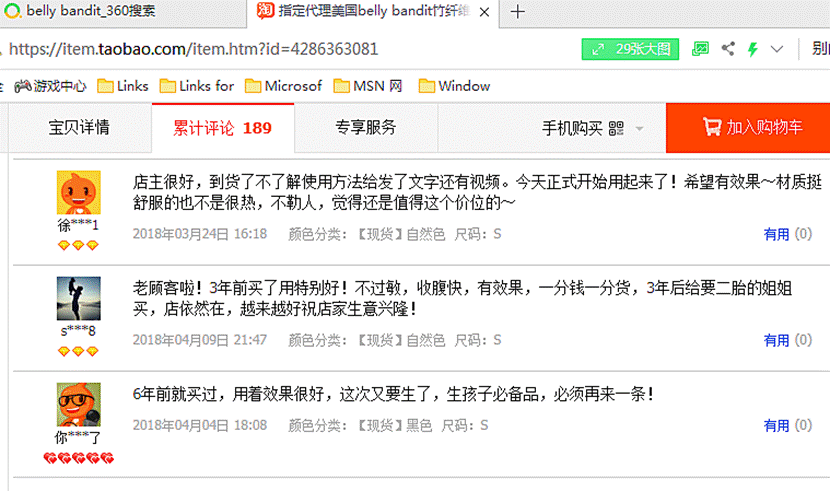 2、 以下是《Belly Bandit竹纤维产后塑腹带》在中国大陆的顾客评论,可作参考。