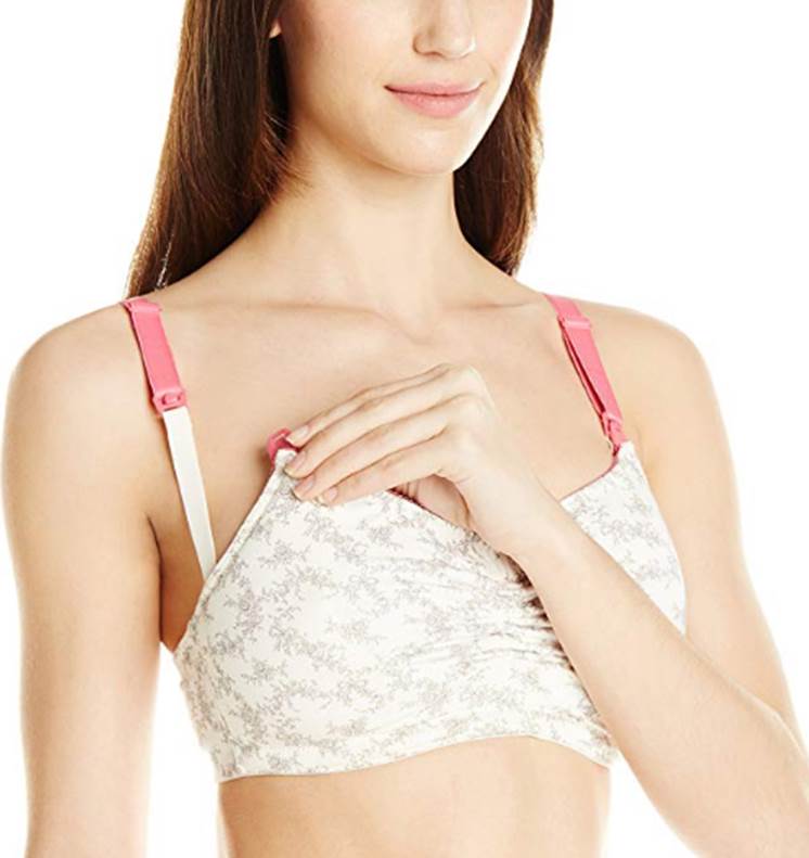 一次成型无缝软杯哺乳胸罩,背带夹能支托哺乳,中缝软绳能调节领圈舒适度。