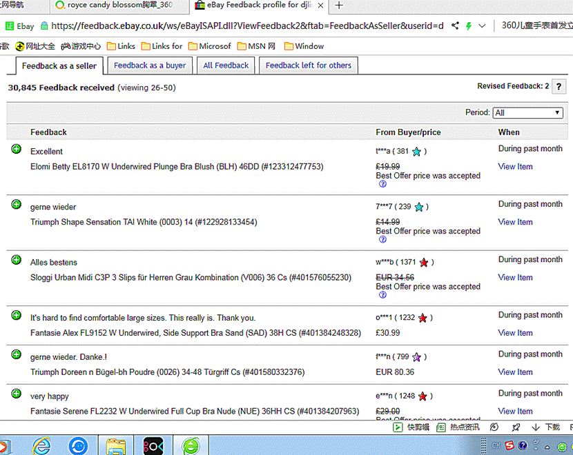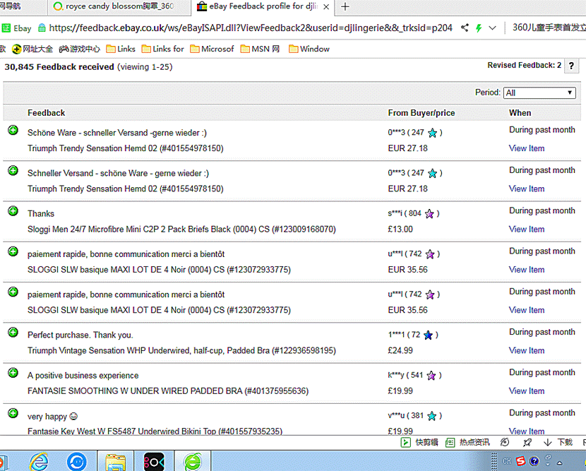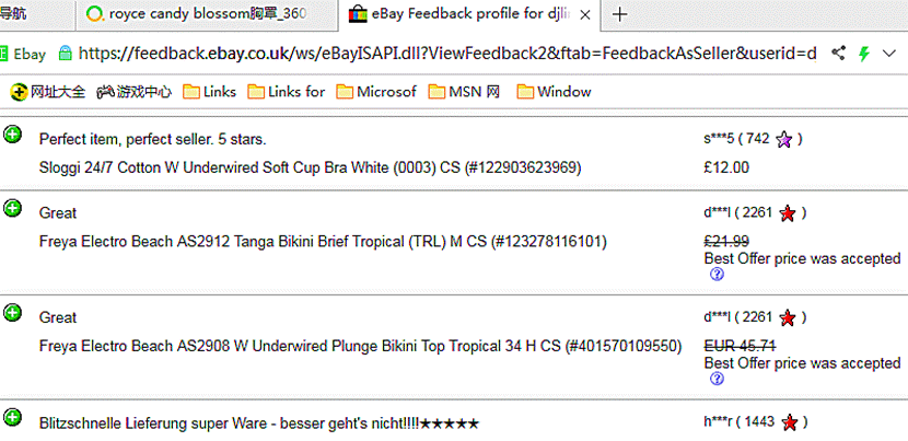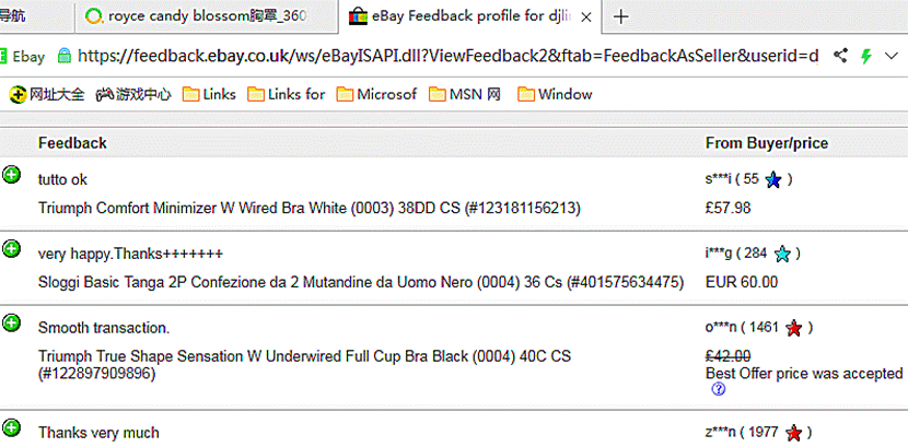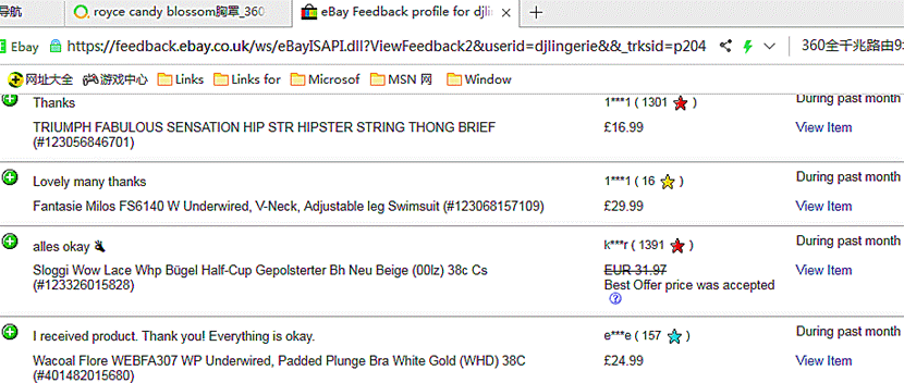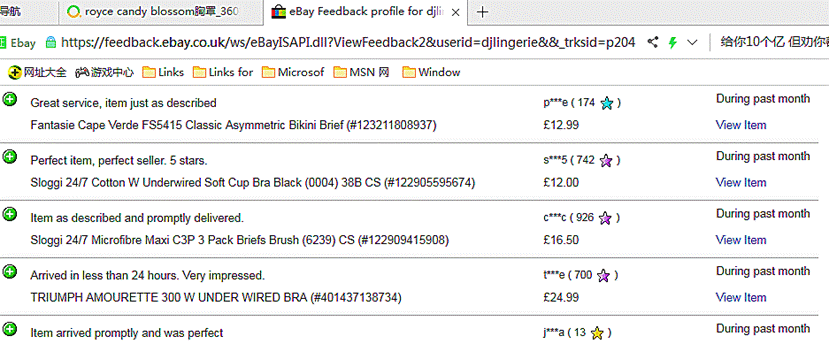 Royce Lingerie是英国女性内衣品牌,产品在英国的好评度99.2%,以下是英国e bay.com网站Royce 哺乳胸罩、相关产品的顾客评论、销售反馈。