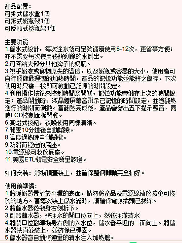 安全警告:本商品不能浸水!