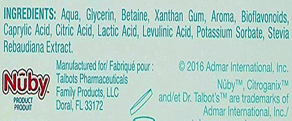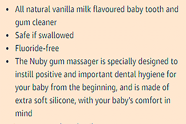 Nuby婴儿牙膏配方成分: