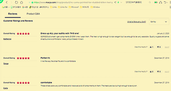 572条评论,4.5星级商品,以下是美国梅西百货顾客的部分评论。