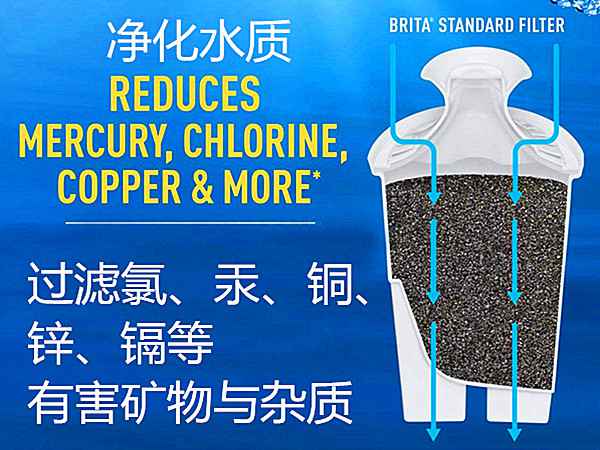 4、1只BRITA滤水芯,可净化151公升自来水,可使用2个月。