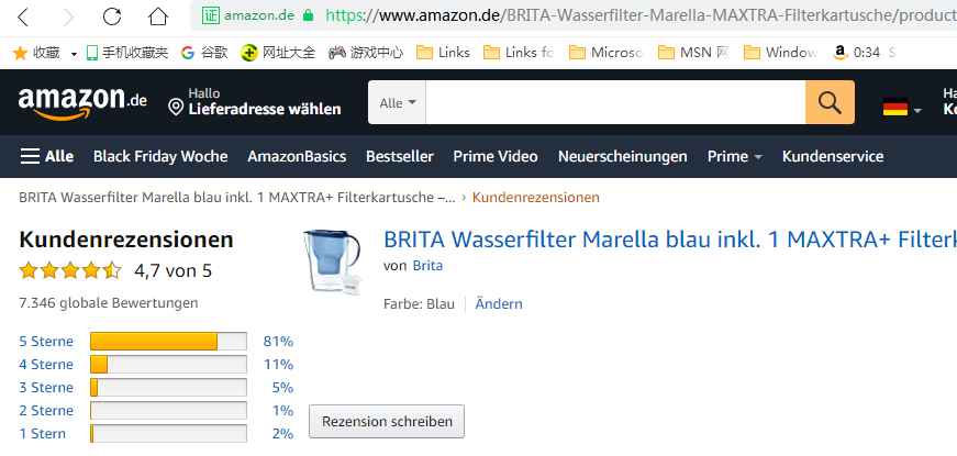 21770条评论,好评度90-92%,以下是加拿大、美国、英国、德国亚马逊顾客的英文评论、德文评论原文。