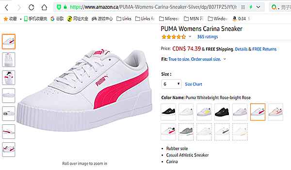 德国puma-carina sneaker女鞋(尺码:6mus)