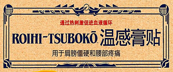 ROIHI止痛贴,由日本ROIHI家族于1932年发明,采用中草药配方,通过温热,刺激穴位,疏通血脉,缓解肌肉、关节疼痛。用于腰酸、肩痛、关节不适,有显著疗效。该商品畅销东南亚、欧美等地区。