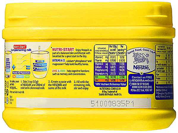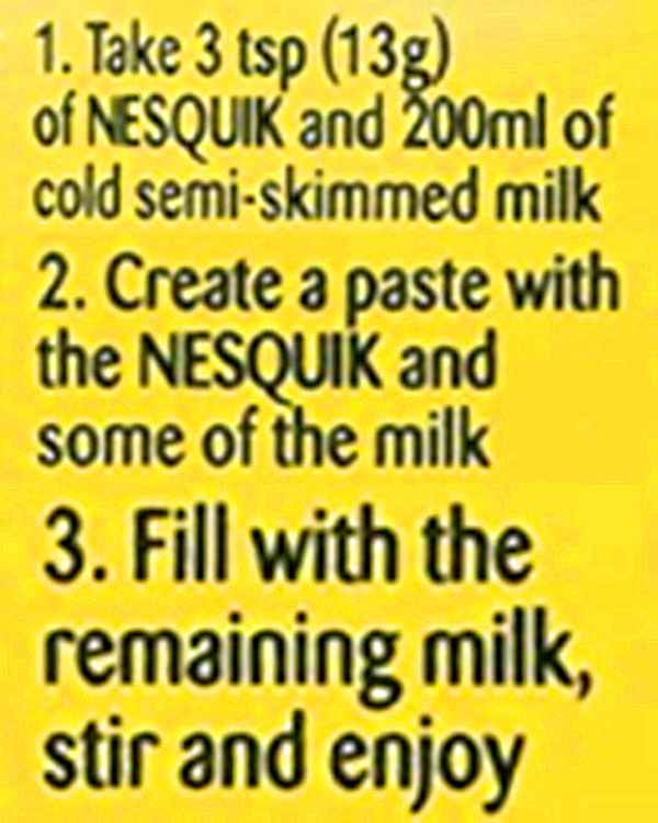 1、3小勺Nesquik(13g)+200ml冷藏低脂牛奶,调制成糊状。