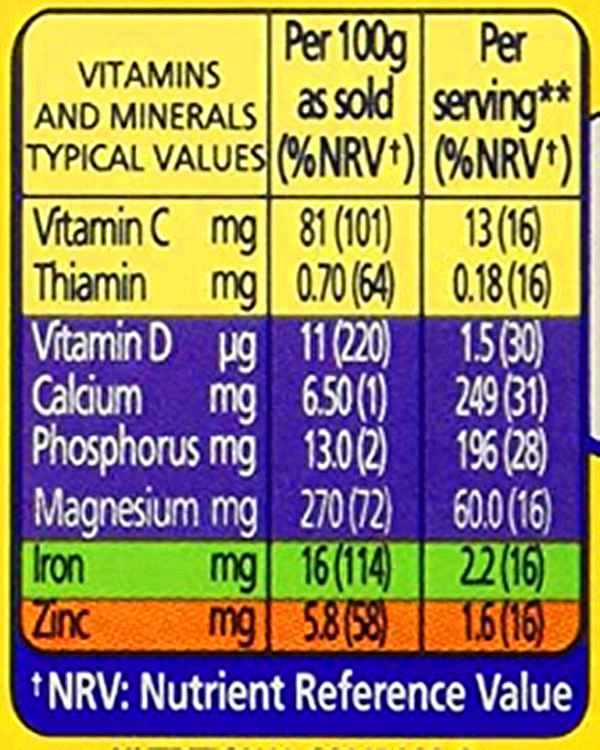 VC-81mg,VB1-0.7mg,VD-11ug,钙6.5mg,磷13mg,镁270mg,铁16mg,锌5.8mg。