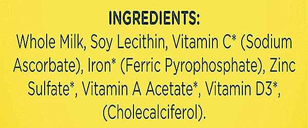 全脂牛奶,大豆卵磷脂,VC钠,焦磷酸铁,硫酸锌,VA醋酸酯,VD3。