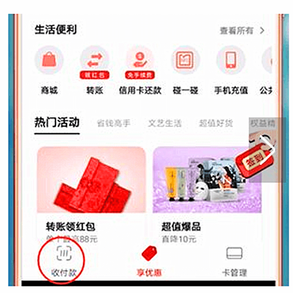 7、打开手机“云闪付”,在“生活便利”页面的左下角,找到並点击“收付款”。