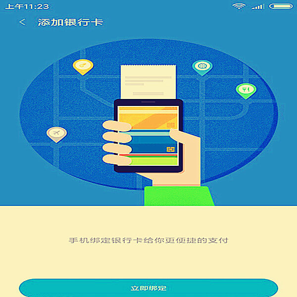 4、在“我的银行卡”页面,点击“立即绑定”,输入银行卡密码,进入银行卡的页面。
